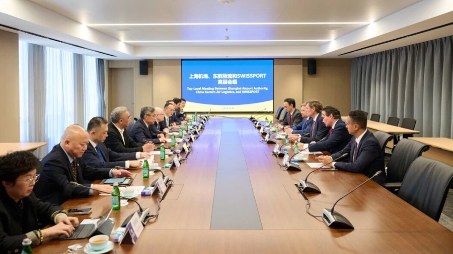 当天下午,机场集团、东航物流、瑞士Swissport举行三方高层会议。会议透露,上海机场正以成为全球要素资源流动关键节点和组织中心为目标,三方通过合作将为全球客户提供更稳定、靠前和前瞻性航空货运解决方案,携手打造适应高质量发展需求的软硬件设施,努力引领打造行业标准。