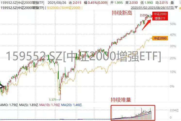 恒泰策略 年内45次新高!中证2000增强ETF(159552)年内累涨超50%,规模扩容近80倍